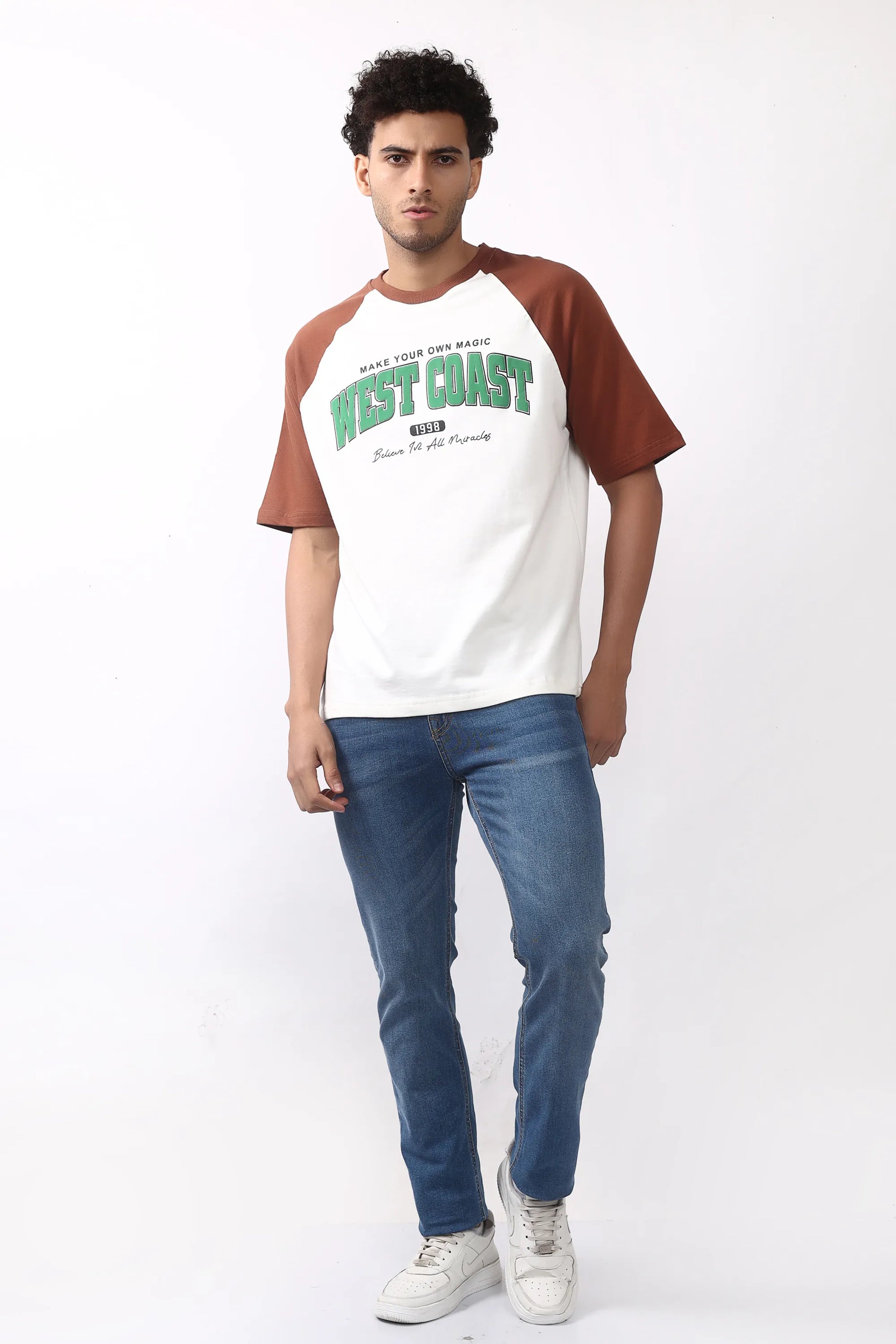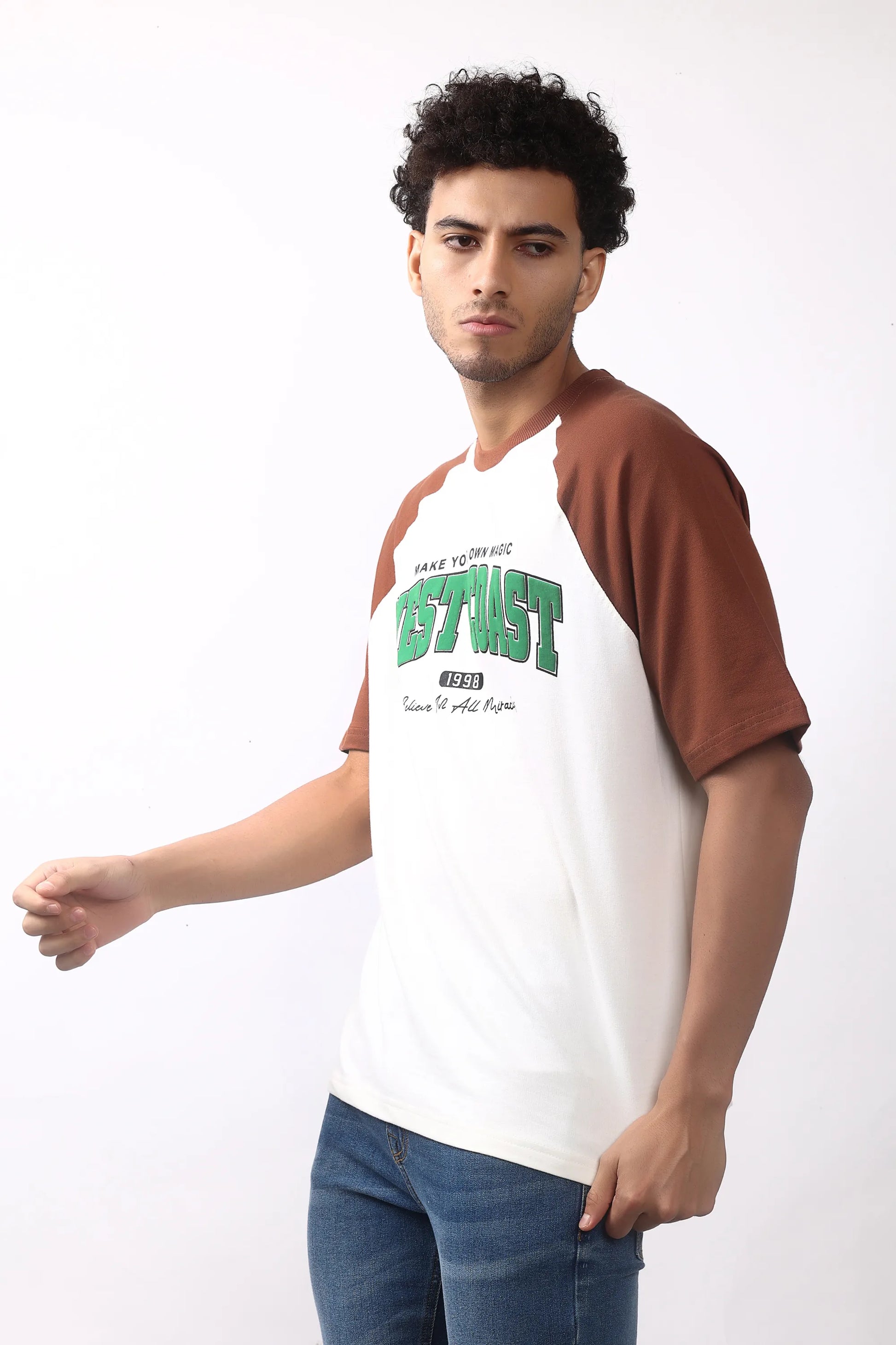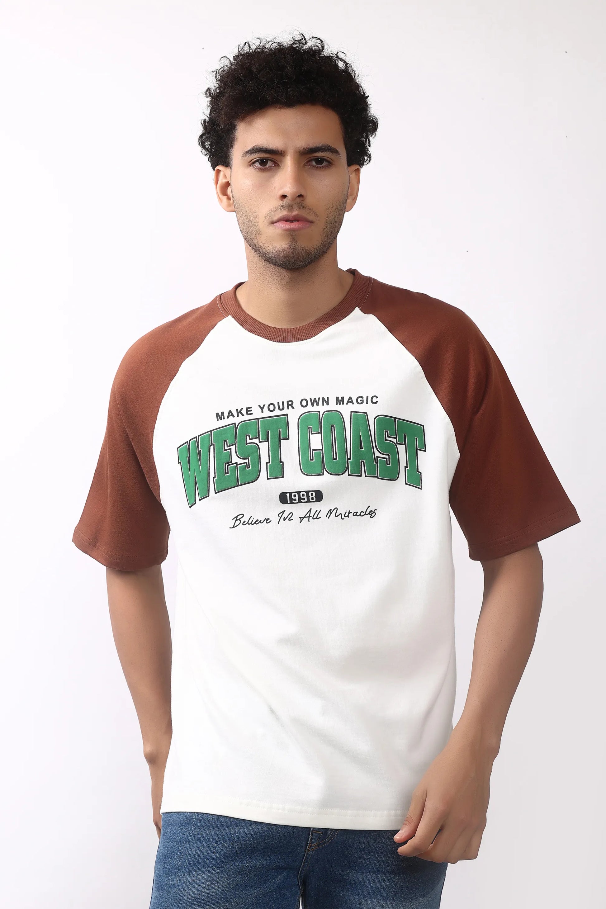 Inspired by classic American college style, this tee brings a bold, laid-back look with a luxury streetwear feel. The oversized fit, raglan contrast sleeves, and powerful WEST COAST 1998 print give it a standout vibe wherever you go.
